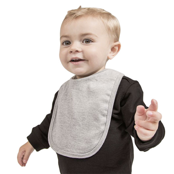 Dětský bryndáček ze 100% enzymaticky prané bavlny gramáže 180g/m², single jersey. Látka je dvouvrstvá a po stranách opatřená lemem. Bryndák je použitelný oboustranně a vzadu se zavazuje na šňůrky. Rozměry: 22x32cm